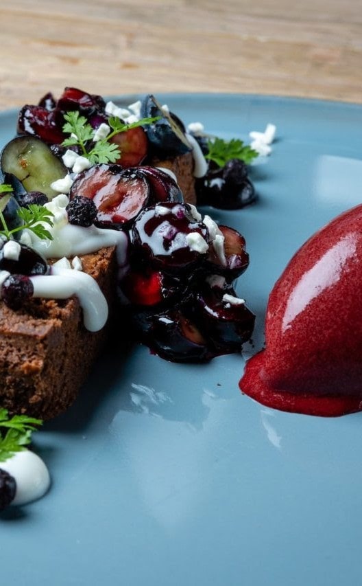 De sorbet heeft een krachtige en zure smaak, is heerlijk in een wafel in de zomer en is vooral geschikt als quenelle om contrast te bieden in een zoet dessert. De met een Michelinster bekroonde Restaurant Coast heeft op de afbeelding rechts een uitstekend voorbeeld gegeven van hoe dit gecombineerd kan worden. Bekijk meer heerlijke desserts met zwarte bessensorbet en leer meer over onze zwarte bessenjam en sorbet hier.